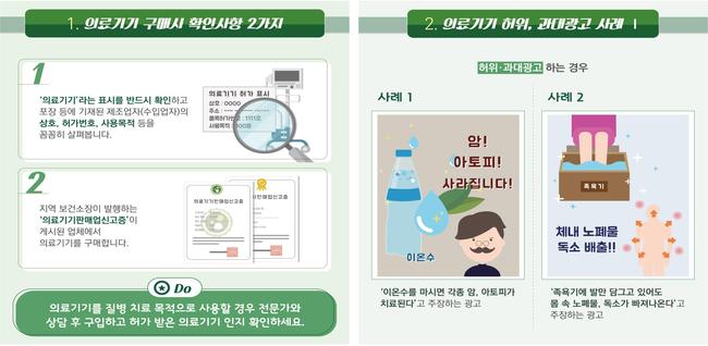 이와 함께 의료기기 구매 시 주의사항 및 거짓광고 식별 방법에 대한 소비자 교육도 병행된다. 소비자가 피해를 입었을 경우 식약처 종합상담실(1577-1255)을 통해 신고 및 상담이 가능하다.
