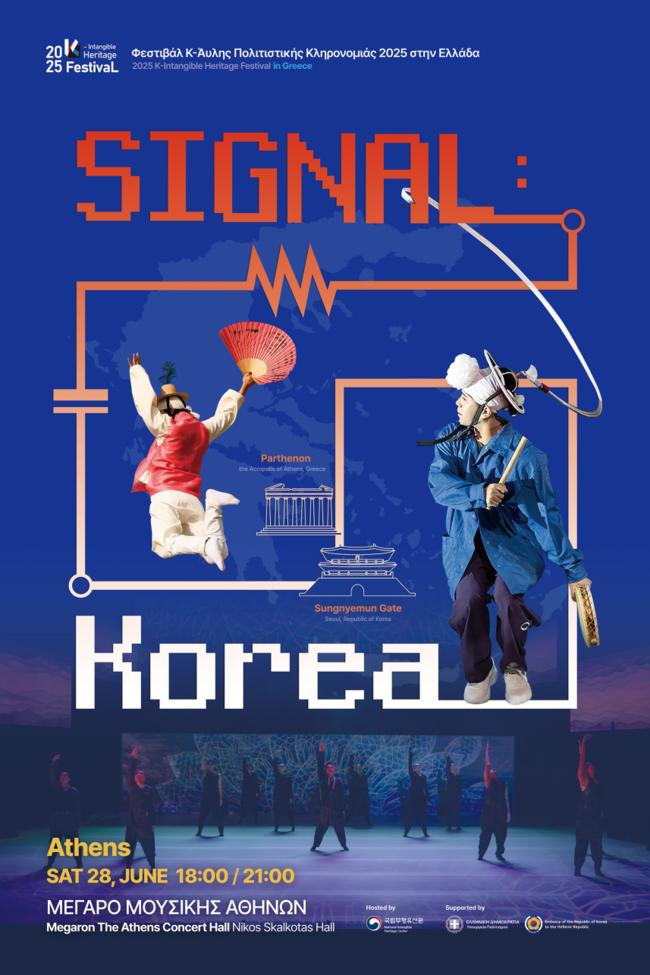 국가유산청 국립무형유산원은 6월 28일(현지 시간) 오후 6시와 9시, 그리스 아테네 메가론 콘서트홀에서 <K-무형유산페스티벌, 시그널 KOREA> 공연을 개최한다고 밝혔다.