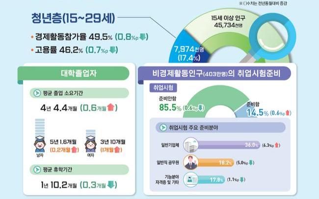 • 취업준비 중인 청년, 비경제활동인구 14.5%…‘그냥 시간 보내는 중’도 25% 넘어