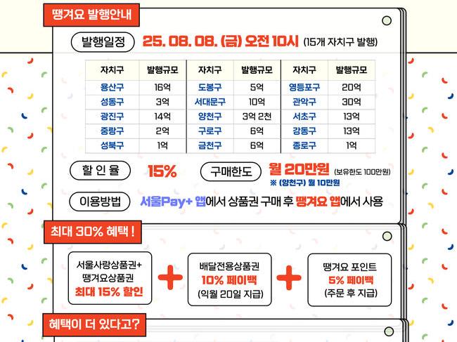 • 15개 자치구, 143억 규모 배달전용상품권 발행…서울페이+에서 15% 할인