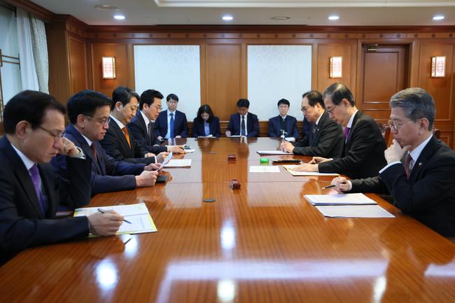 회의에는 최상목 경제부총리, 안덕근 산업통상자원부 장관, 정인교 통상교섭본부장, 김홍균 외교부 1차관 등 경제·통상 고위 관계자들이 참석해 상황을 공유하고 대응 방향을 논의했다. 한 권한대행은 “글로벌 관세전쟁이 현실로 다가온 매우 엄중한 상황”이라며 “국익을 지키기 위해 정부가 가진 모든 역량을 쏟아부어야 한다”고 강조했다.