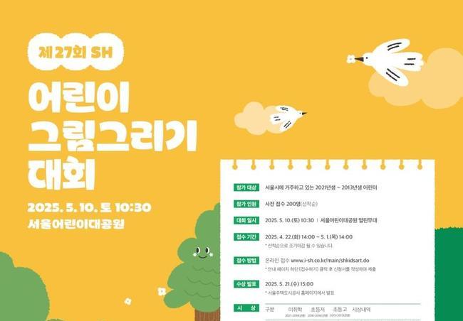 SH공사는 오는 5월 10일 어린이대공원 열린무대에서 개최하는 `제27회 SH 어린이 그림그리기 대회` 참가자를 선착순 모집한다고 22일 밝혔다.