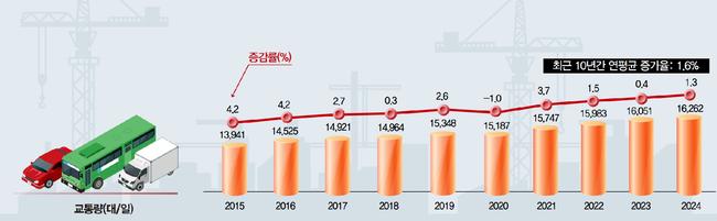 • 2024년 전국 평균 일교통량 16,262대…전년 대비 1.3% 증가